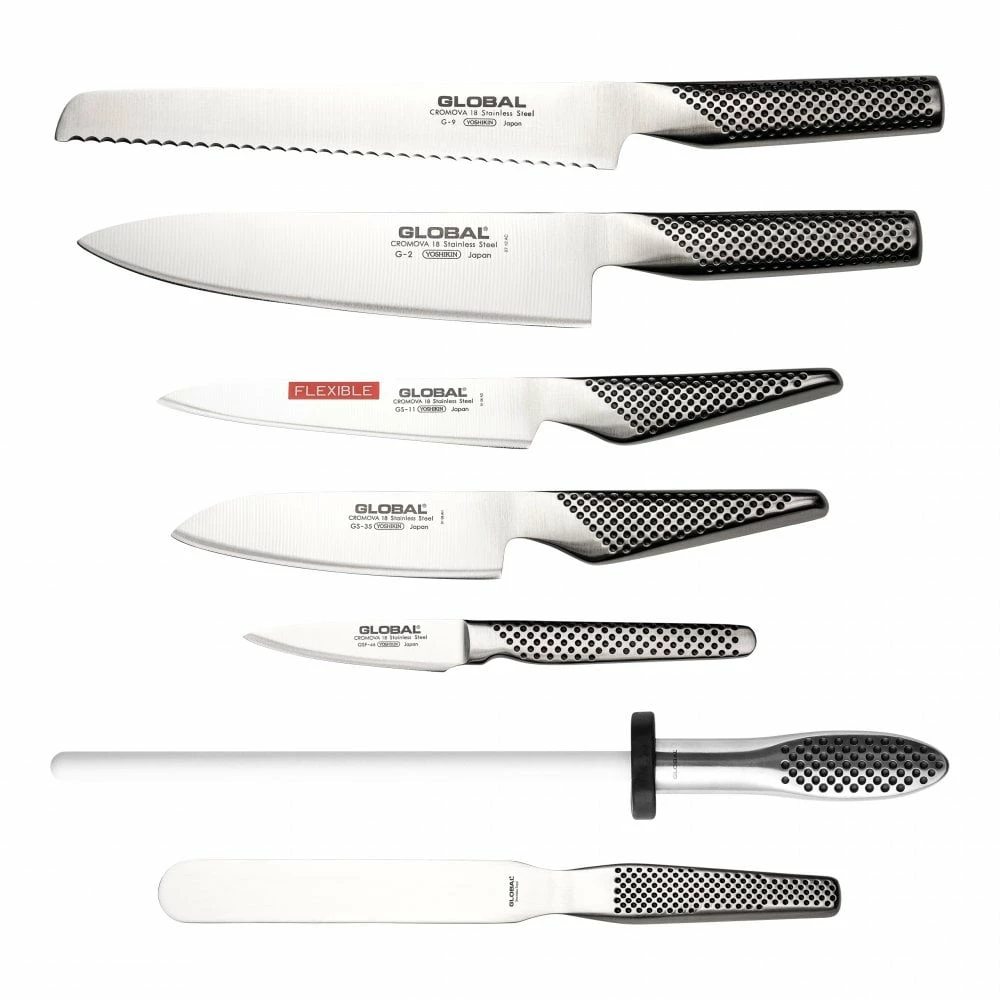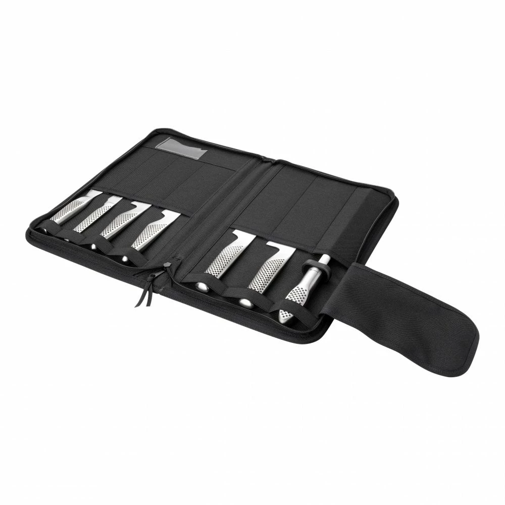 For the aspiring chef. A fantastic set of knives, that will cover all tasks in professional kitchens. The set also contains a Global ceramic rod sharpener to keep your knives in top condition. The zip lock nylon case will allow you to store and take your knives anywhere safely and conveniently.