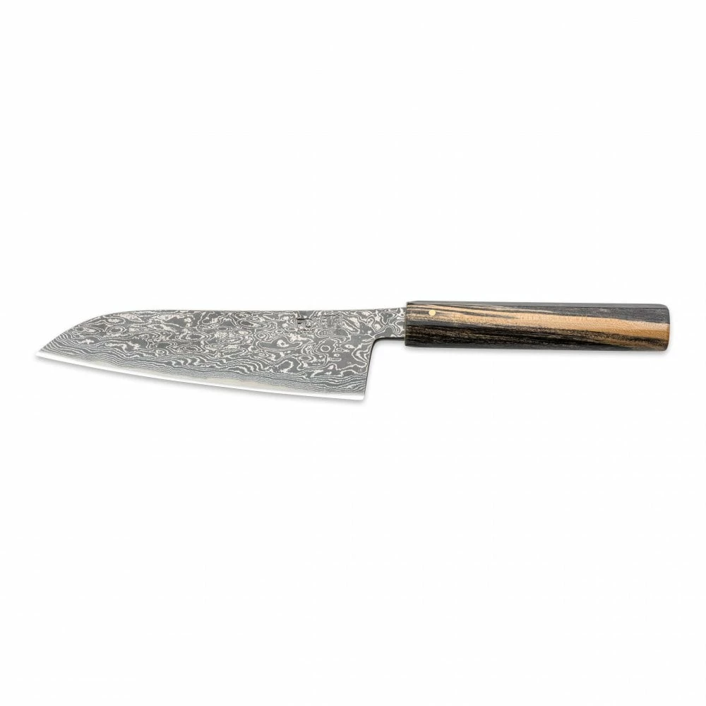 Hinoura Tsukasa FAN OUT Hinoura Tsukasa 16.5cm Santoku Black Mushin Damascus Black Handle