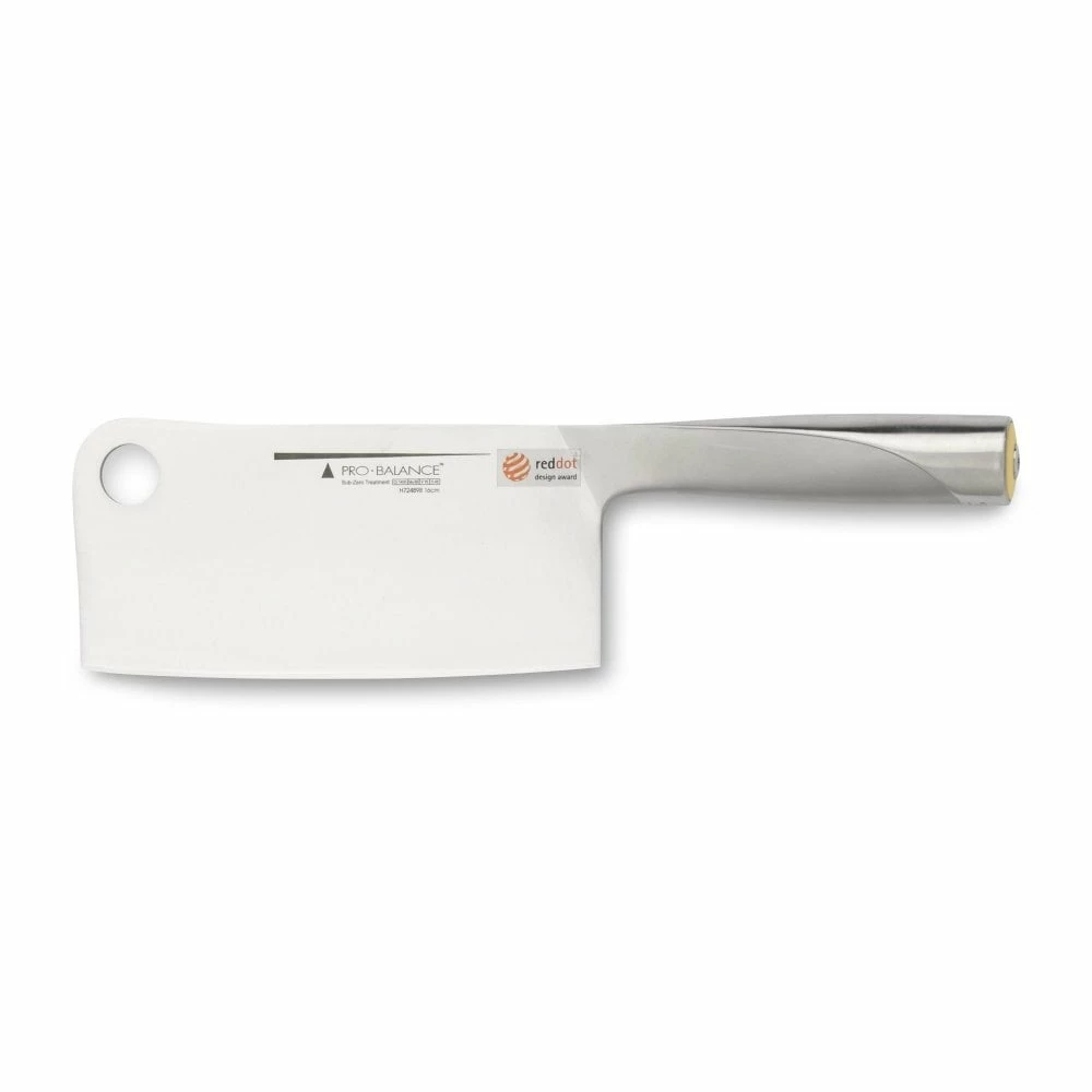 Pro Balance Knives are revolutionary in concept and design. All Pro Balance Knives feature a hollow handle which can be opened to customise the weight by adding or removing small weights. If you like the sharpness of a true Japanese knife, but hate the weight of most Japanese knives, simply add in the included weights into the handle. By shifting the weights forwards or backwards you can alter the centre of balance of the knife which will either aid a pinch or hammer grip. The knife itself is no gimmick though and has an all S/S design and structure. The blade undergoes sub-zero treatment during the tempering stage to create an incredibly strong blade (made from German 1.4116 steel) with a +55 HRC rating, and hand sharpened to rival any Japanese brand. The knives slice through food effortlessly and all come with a special coloured end cap so you can tell which knife is which in the block. Always wash your knives by hand; dry thoroughly and never put them in a dishwasher. Knives should be stored in a block or other protective case to protect the blades and always kept out of reach of children.