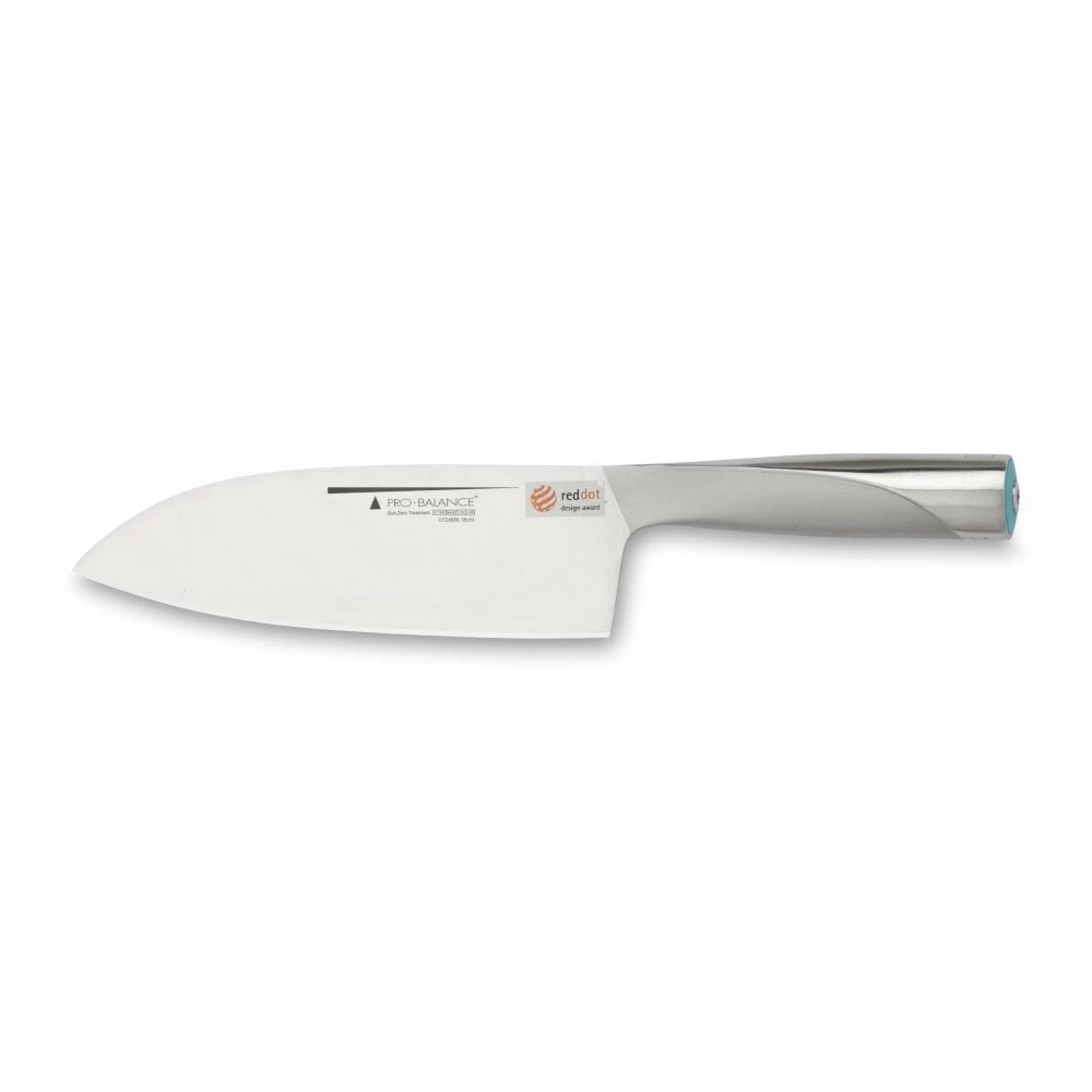Pro Balance Knives are revolutionary in concept and design. All Pro Balance Knives feature a hollow handle which can be opened to customise the weight by adding or removing small weights. If you like the sharpness of a true Japanese knife, but hate the weight of most Japanese knives, simply add in the included weights into the handle. By shifting the weights forwards or backwards you can alter the centre of balance of the knife which will either aid a pinch or hammer grip. The knife itself is no gimmick though and has an all S/S design and structure. The blade undergoes sub-zero treatment during the tempering stage to create an incredibly strong blade (made from German 1.4116 steel) with a +55 HRC rating, and hand sharpened to rival any Japanese brand. The knives slice through food effortlessly and all come with a special coloured end cap so you can tell which knife is which in the block. Always wash your knives by hand; dry thoroughly and never put them in a dishwasher. Knives should be stored in a block or other protective case to protect the blades and always kept out of reach of children.