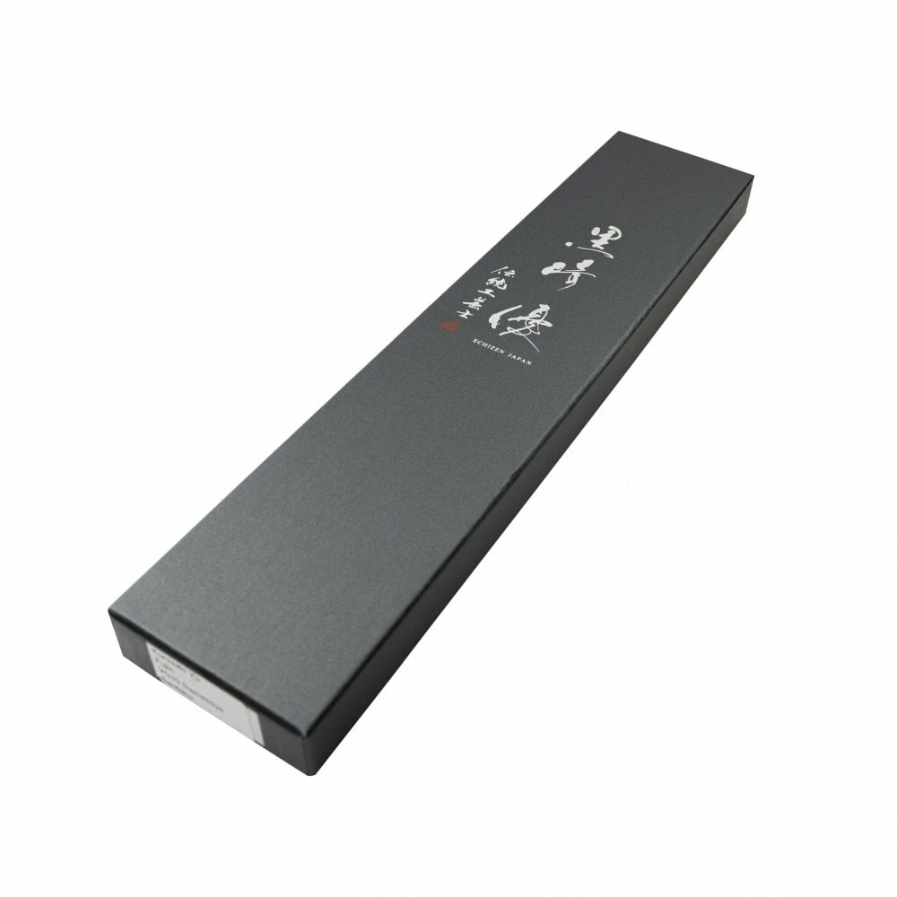The 24cm long blade of the Gyuto Knife comes with an octagonal walnut handle and is perfect for all large Kitchen tasks, this being the large version of the 21cm Gyuto knife. Yu Kurosaki presents his Fujin range of knives, made from VG-10 stainless steel and finished with a Hammered & Damascus finish on the blade of the knife. Fujin meaning “Wind God” is the name given to the knife for the distinctive hammered pattern finish on the blade which represents the wind. Along with this, it is finished with a beautiful Damascus pattern on the blade as well making it glisten in the light. Fujin has a traditional Japanese knife construction with an Octagonal handle made from walnut, these are top of the line knives made for serious knife enthusiasts. Yu Kurosaki’s patterns on the blade are distinctive and well recognised, Kurosaki being one of the leading blacksmiths of the Takefu Knife Village. By using centuries-old forging techniques, he manages to create blades that have immensely sharp cutting edges that will stand the test of any chef. – a beautifully efficient handmade knife.